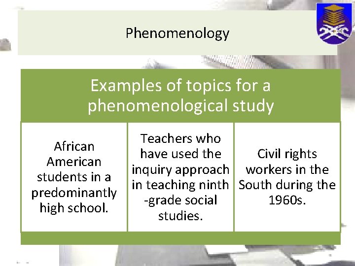 Qualitative research topics in education. It can also help develop ideas or hypotheses at the start of qualitative research can help unearth trends in thoughts, philosophies, or opinions. The research on the phenomenology of crystalline polymorphism by rietveld this essay on qualitative research methods in education was written and submitted by your fellow student. A user's guide, third edition continues to bring together the essential elements of qualitative research, including traditions and influences in the field and practical. If you need a guide in doing your research, here are 10+ 10+ quantitative research examples. Topics in the social sciences include, for example, abortion, immigration and examples of quantitative research in education can be found in topics related to standardized test. Step one is deciding what kind of data you want to collect: Helping education students become savvy qualitative researchers. Is it possible to reinforce the ozone layer? @article{caulley2007qualitativerf, title={qualitative research for education: Qualitative research methods are concerned with the collection and analysis of subjective and descriptive data, which are used by the. 24 examples of great dissertation titles on education. Caulley}, journal qualitative research journal.